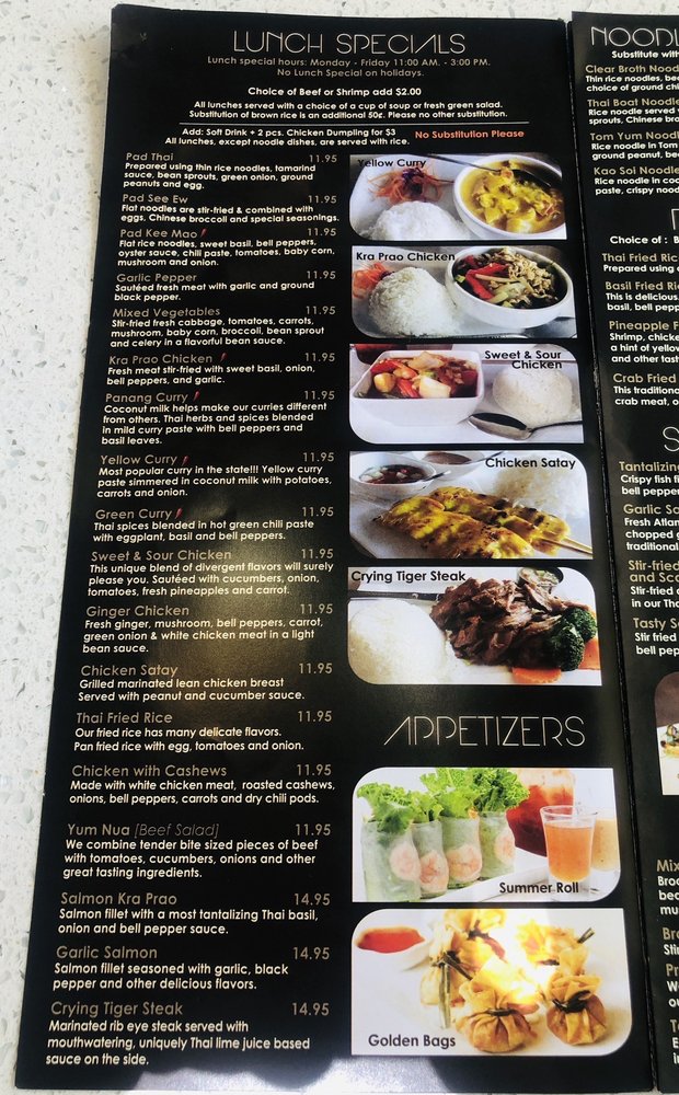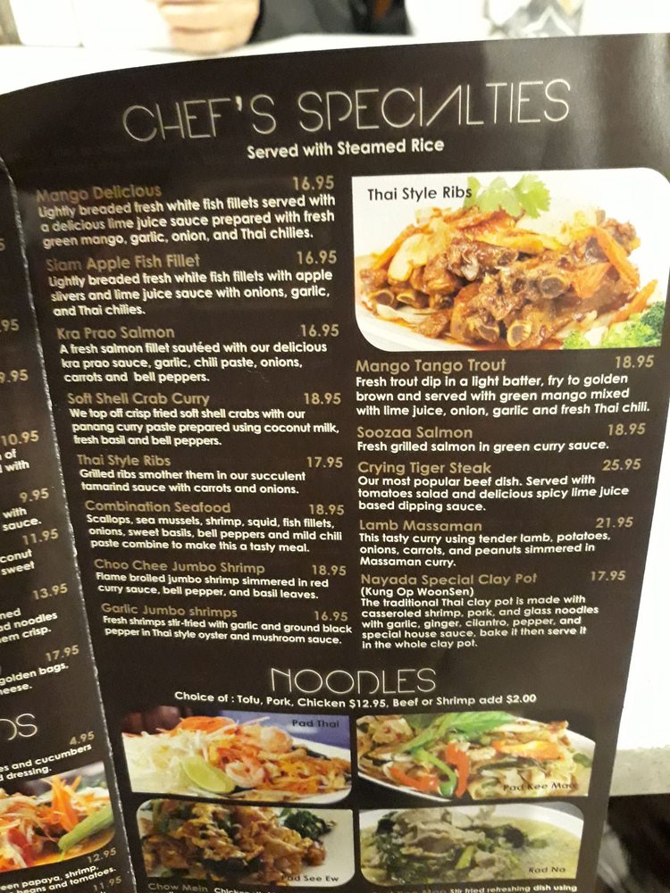 Nayada Thai Cuisine Menu